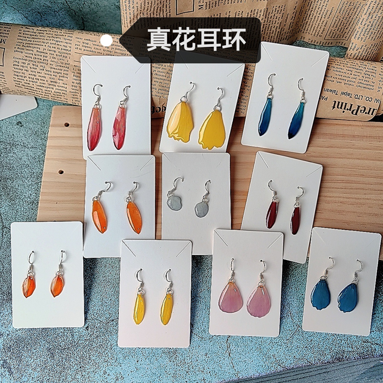 Petal Series Natural Earrings, Dried Flower Earrings, Handmade Glue Earrings, Ear Hooks, Forest Niche Petal Earrings for Women