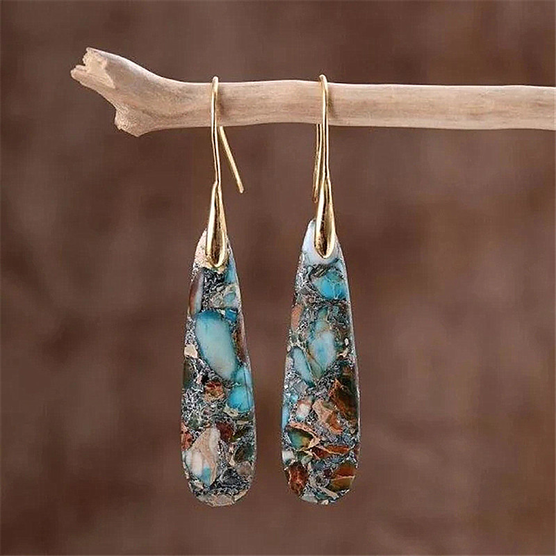 Grey Blue Color Long Water Drop Emperor Stone Earrings Cross-border Hot Sale New Retro Color Natural Stone Ear Jewelry