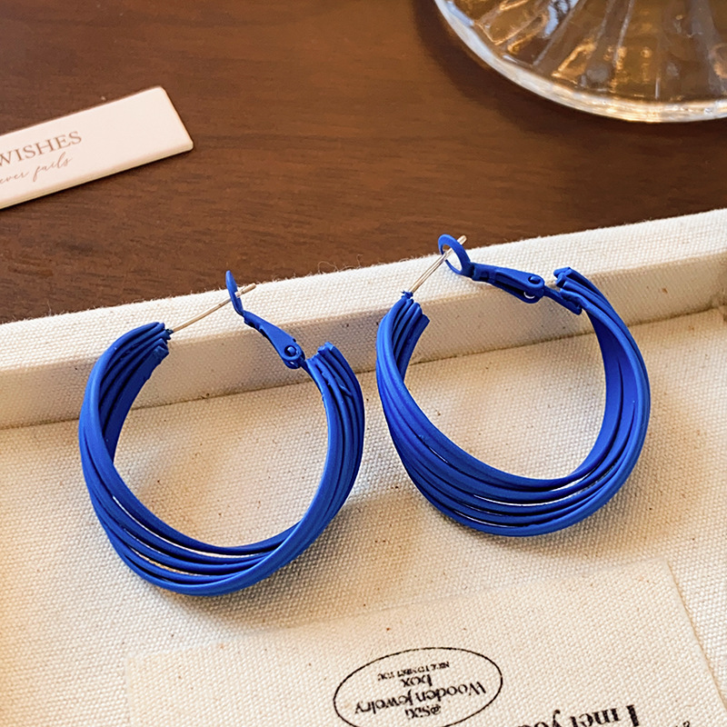 2025 New Blue Multi-Layer Twisted Plain Hoop Earrings for Women Niche Design Earrings Accessible Luxury High-End Earrings
