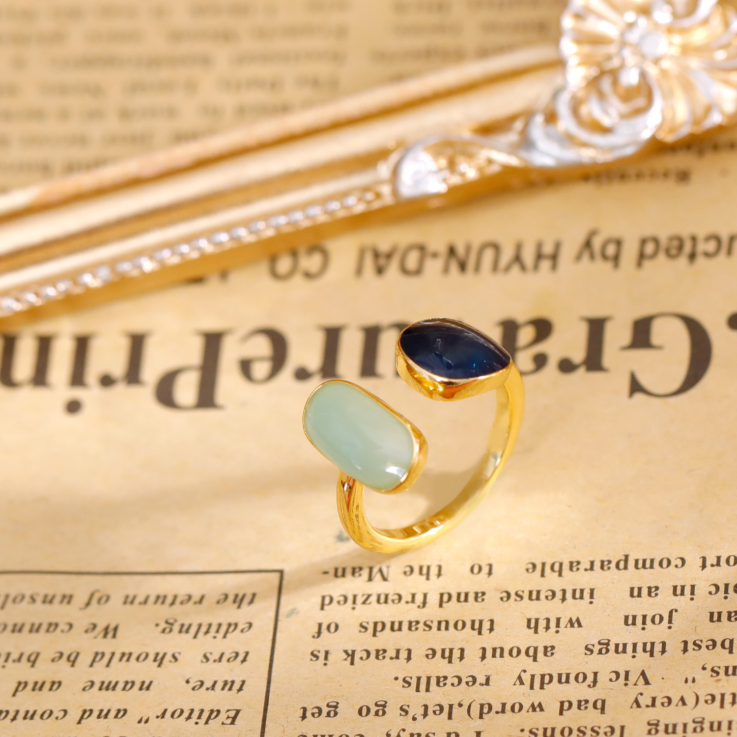 Cross-Border Sea Blue Love Moonlight Zircon Open Ring Women's Niche Design Index Finger Ring Temperament Adjustable Ring