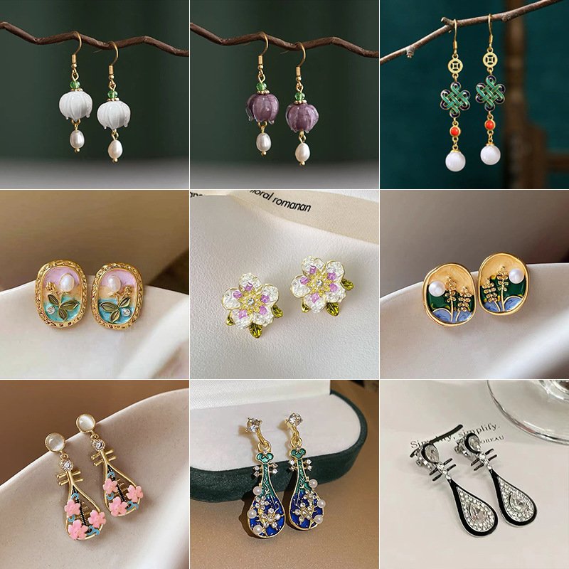 Chinese Style New S925 Silver Needle Earrings Retro Series Elegant Elegant National Tide Palace Xiangyun Earrings Ring