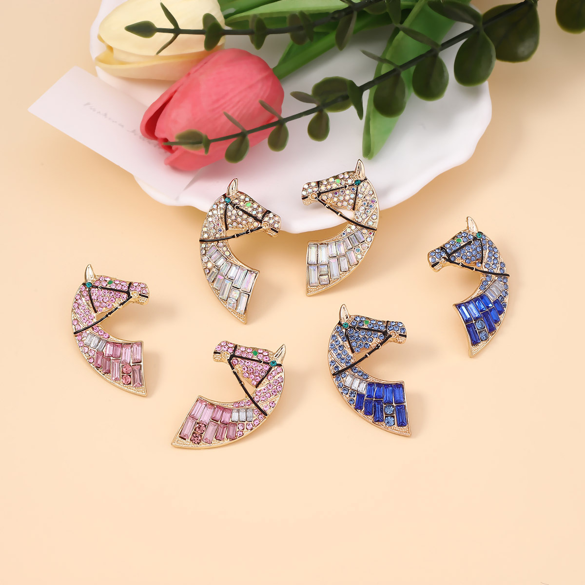 European and American innovative animal horse head rhinestone stud earrings creative alloy light luxury versatile personality exaggerated temperament earrings