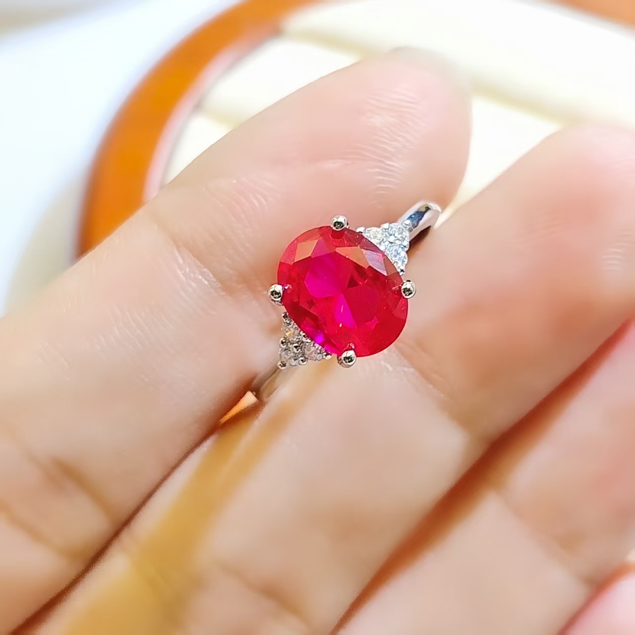 2025 New Jewelry Imitation 8X10 Red Sapphire Open Ring Women's Accessible Luxury Versatile Red Corundum Colored Gemstone Ring