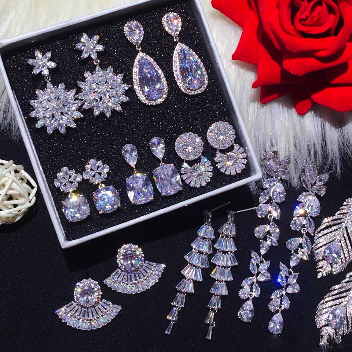 French-Style Diamond-Studded Feather Water Drop Zircon Earrings, Light Luxury High-End Stud Earrings, Fashionable Versatile Earrings with a Unique Design