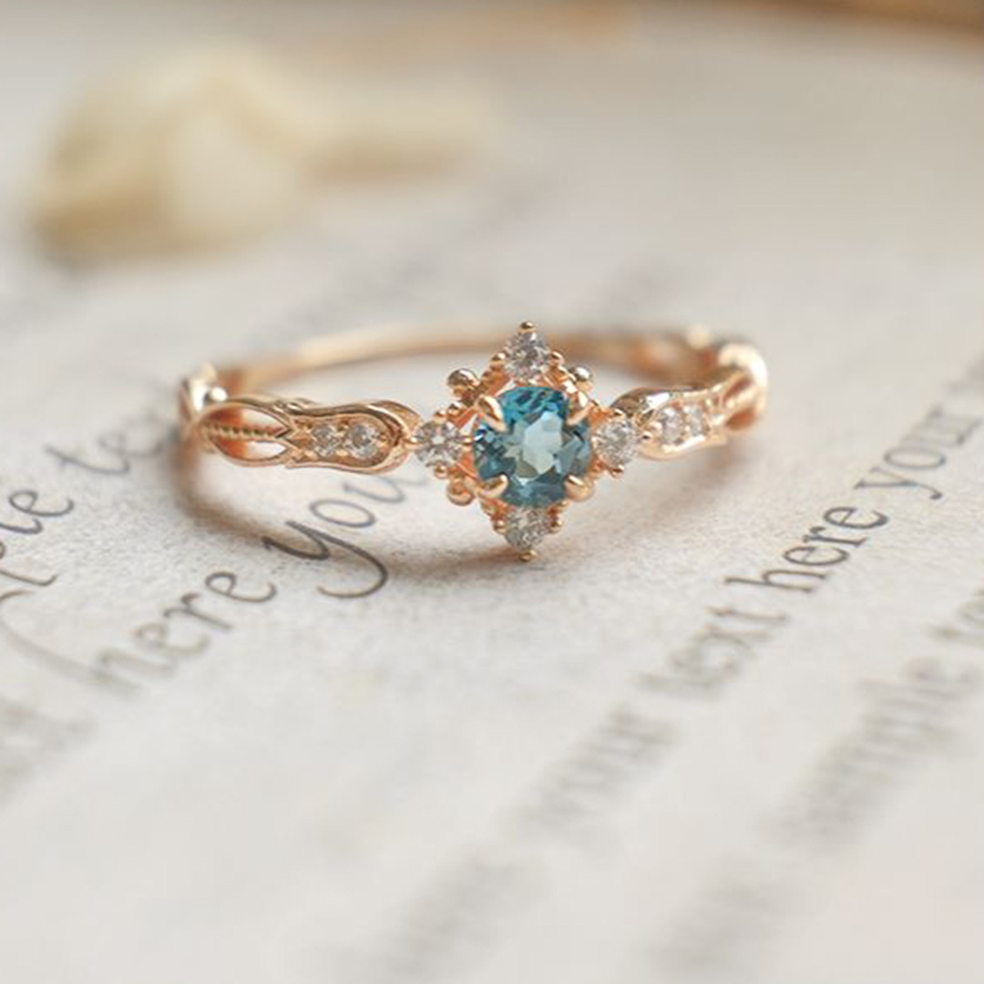 Vintage Suzuki Blue Gemstone Loose Ring Women's Niche Japanese Style Fresh Inlaid Ring Fashion Light Luxury Jewelry
