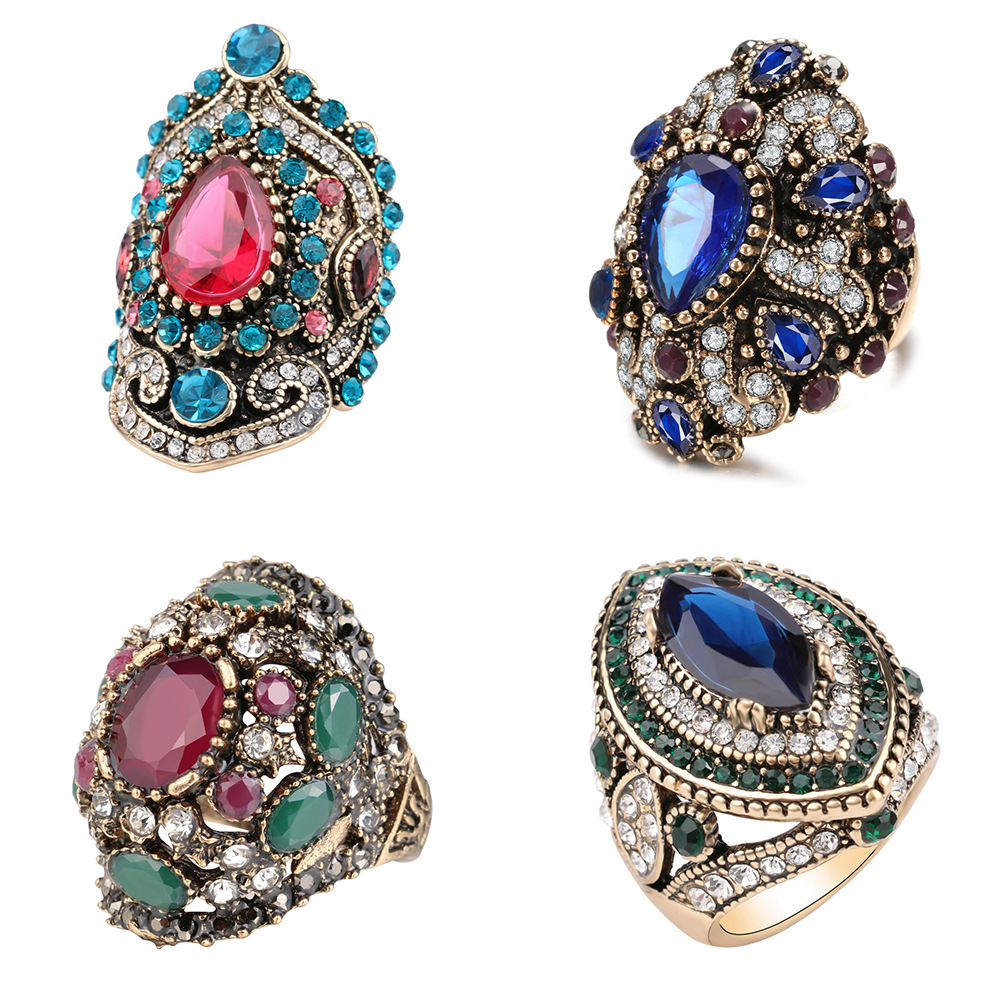 Cross-Border European and American Bohemian Ring Gold-Plated Retro Women's Niche Light Luxury High-End Exaggerated Gemstone Ring Decoration