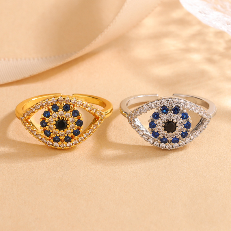 Amazon European and American Cross-Border Devil's Eye Zircon Ring for Women with Blue Eyes Opening Adjustable Index Finger Ring for Women