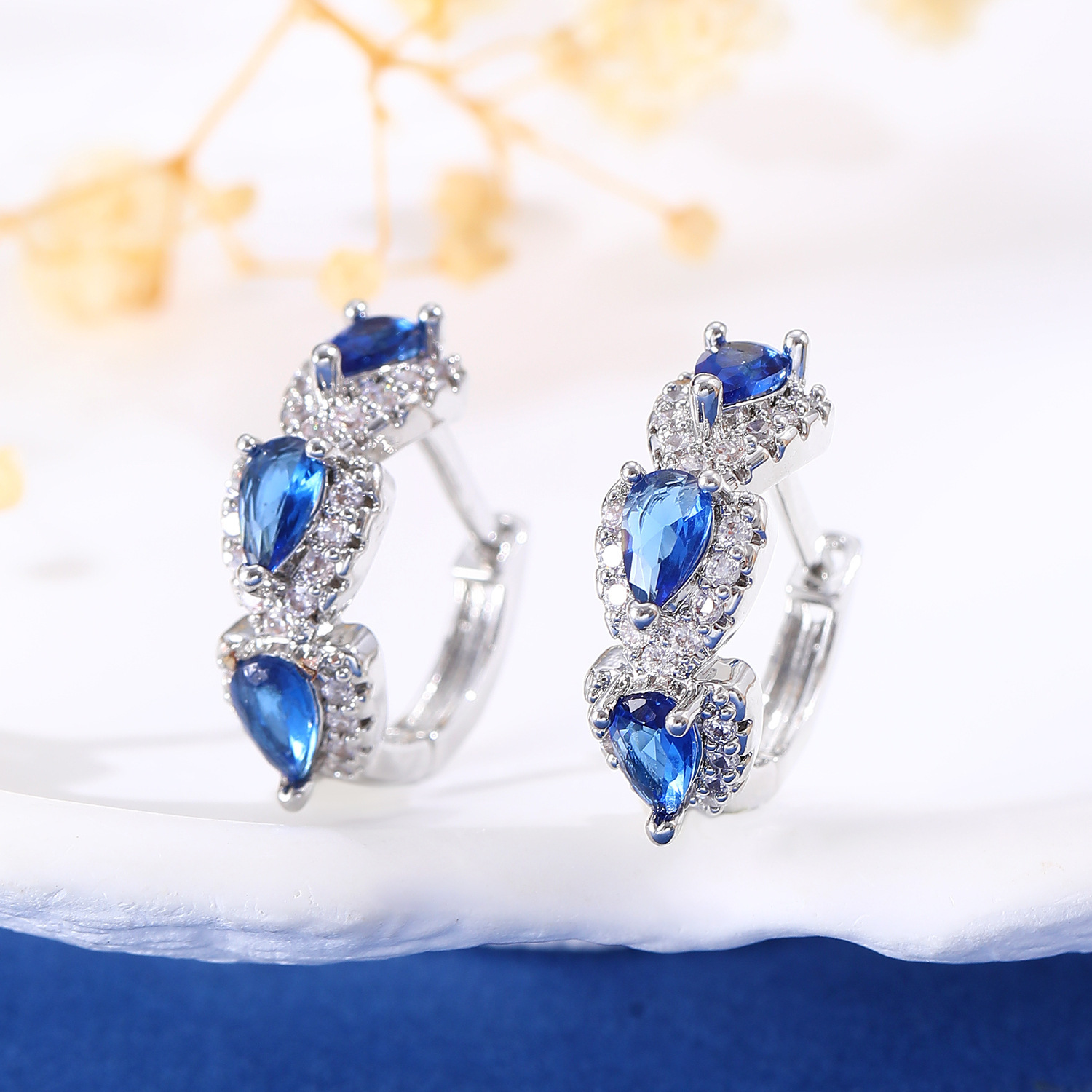 Popular heart-to-heart print blue crystal lovely ear lines light luxury niche high-grade long slimming earrings elegant all-match