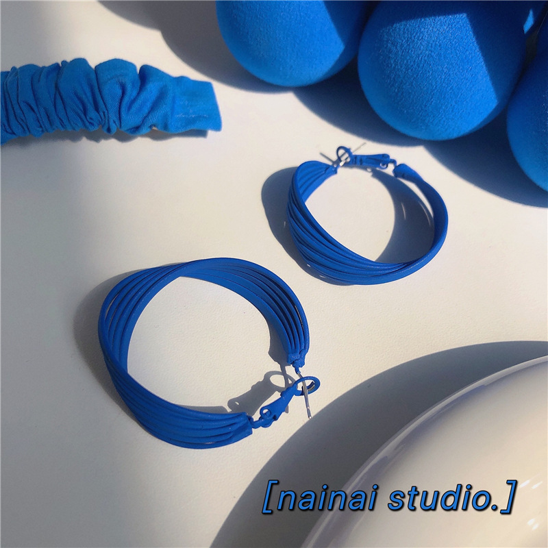Blue earrings silver needle exaggerated French geometric design sense earrings fashion temperament earrings personality earrings wholesale
