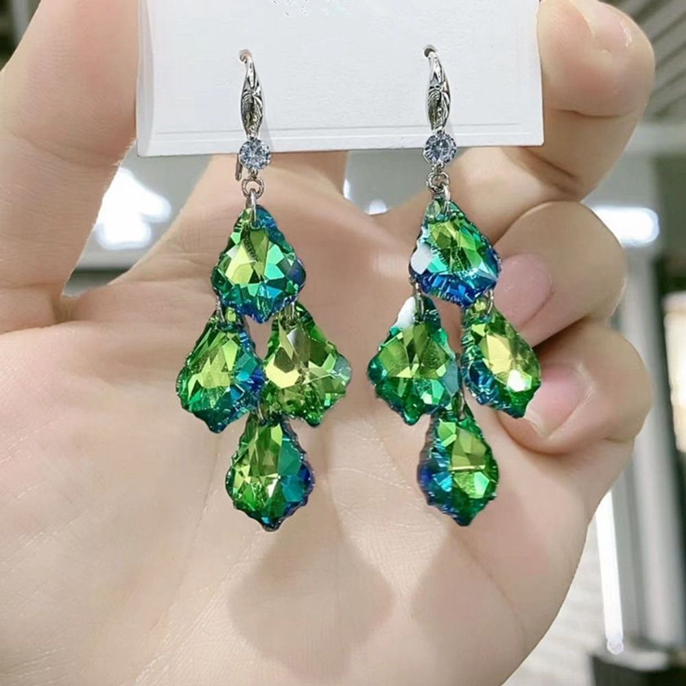 Crystal Earrings Jewelry Women's South Korea Elegant Cyber Celebrity Green Tassel Earrings Accessories Pendant Luxury High-end Sense