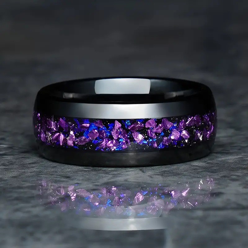 Cross-Border Popular Stainless Steel Blue Ice Point Embellished with Purple Floral Personalized Elegant Ring 8mm Blue and Purple Floral