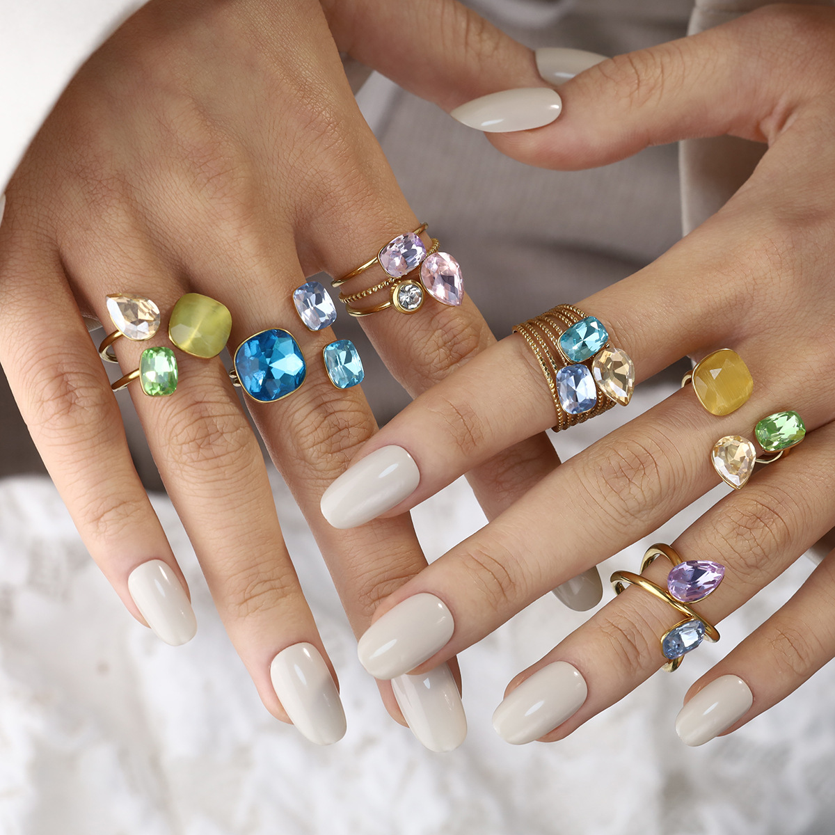 Explosive opening ring women imitation tourmaline light luxury niche design food finger ring retro color crystal beads ring wholesale