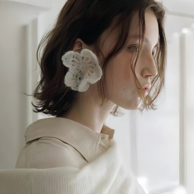 Handmade knitted flower earrings mohair crochet niche high-end sense crocheted earrings fashionable personality new earrings