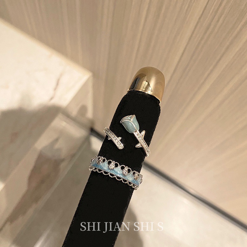 Mori Mint Blue Rose Zircon Ring Women's Online Red White Finger Ring Elegant Stacked Adjustable Ring Bracelet