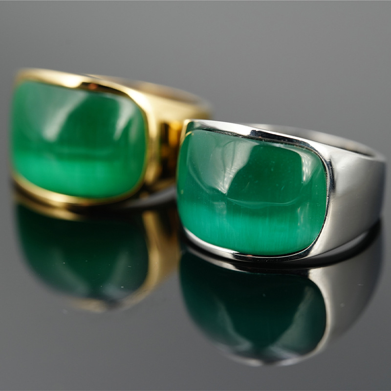 European and American foreign trade cross-border exaggerated gemstone ring sapphire ring Emerald obsidian exaggerated couple ring