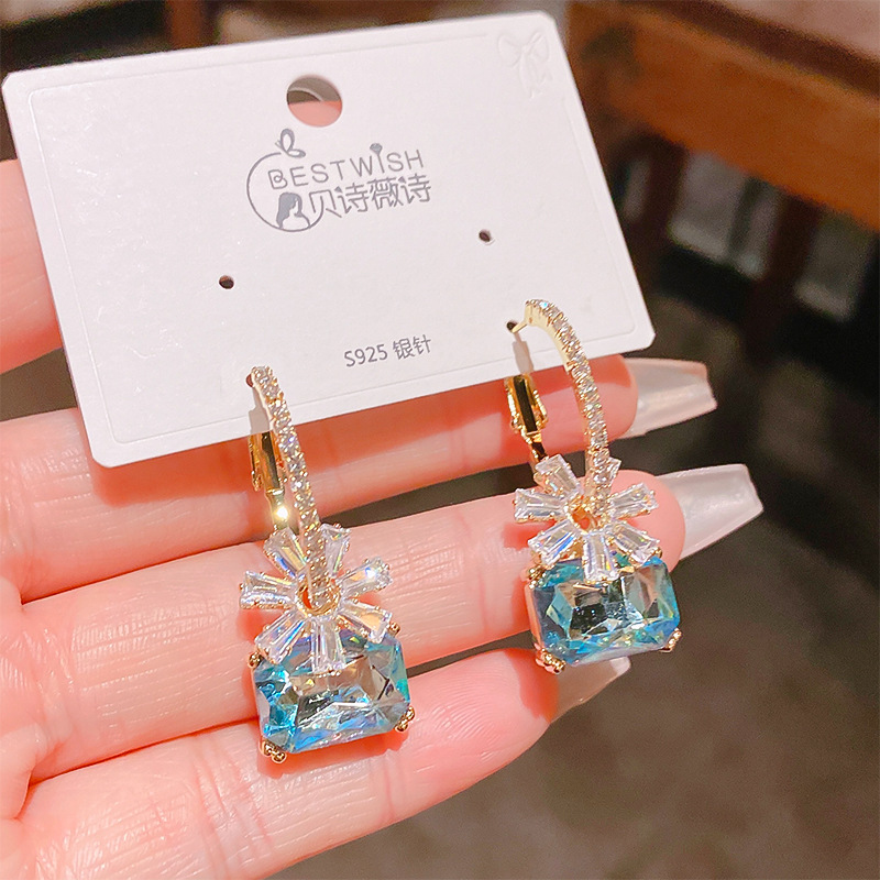 Exquisite Internet Celebrity Elegant and Stylish Blue Crystal Zircon Flower Earrings Korean Style High-End Earrings Jewelry
