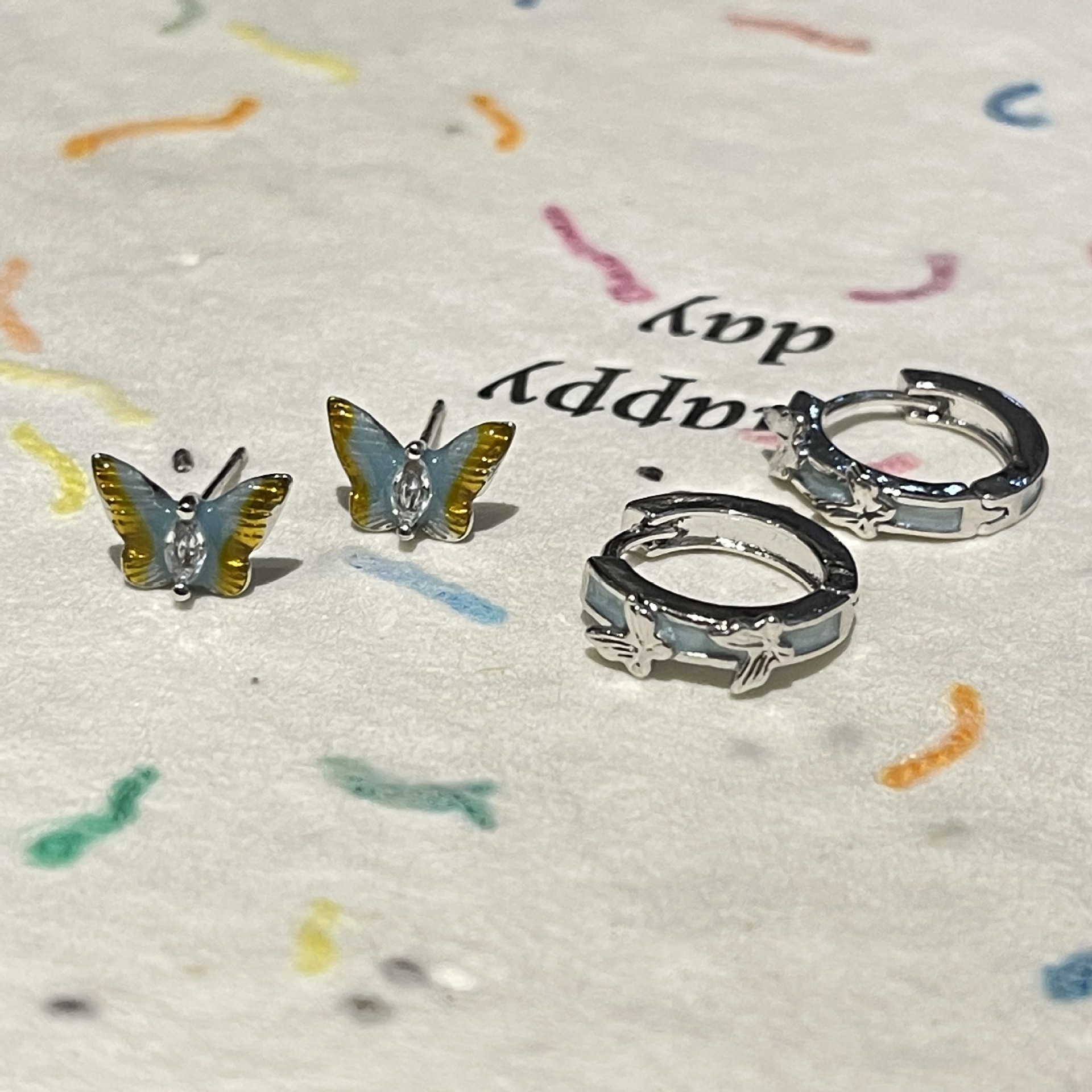 Oil-dripping blue butterfly earrings cool feeling fashion temperament small fresh gradient butterfly earrings ladies all-match