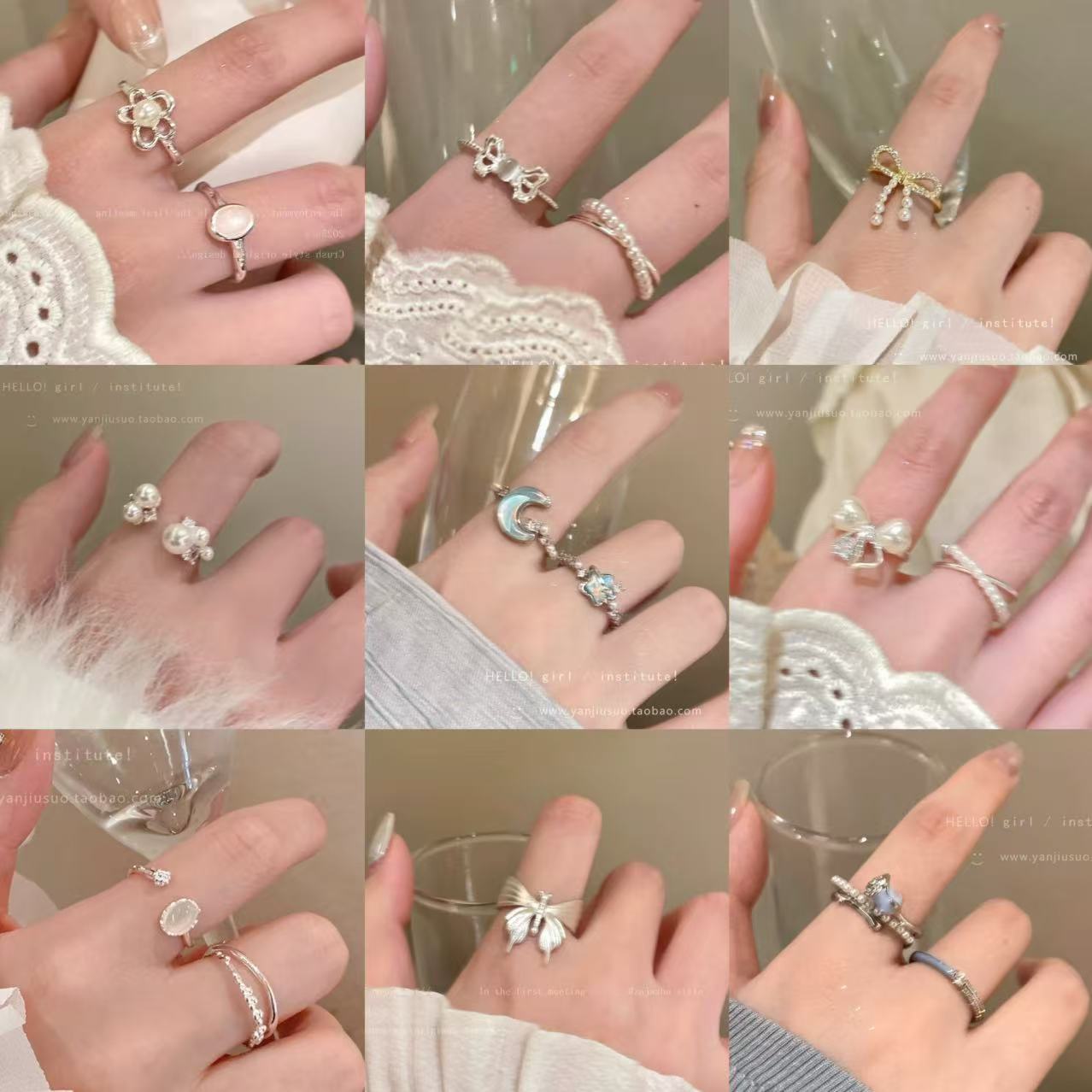 Ins wind pearl zircon butterfly ring women's niche high-end feeling retro cold feeling temperament open ring wholesale