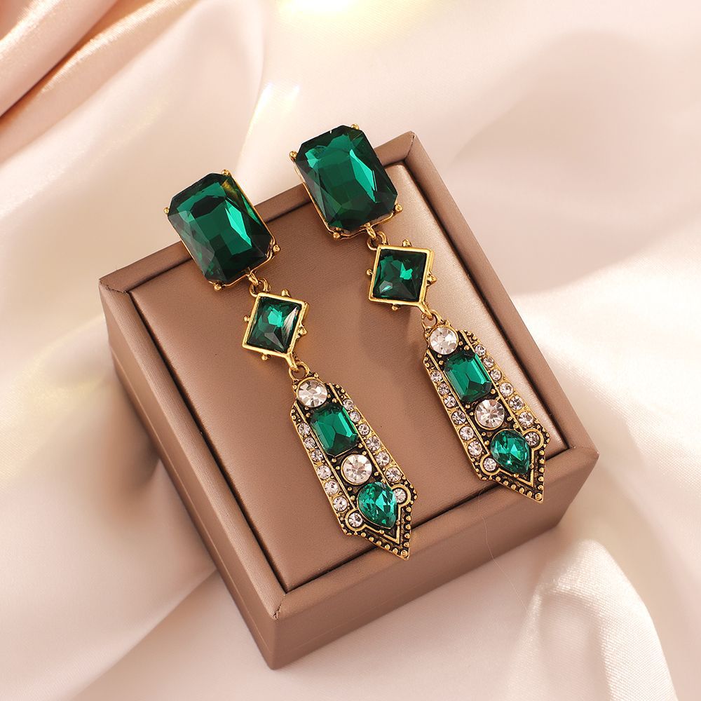 Cross-Border New European and American Exaggerated Temperament Earrings Creative Geometric Long Diamond Earrings Women's Fashion Retro Earrings