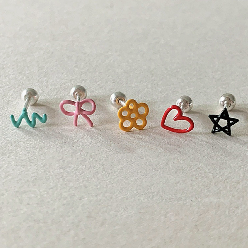 ins Style Vigorous Girl's Childlike Contrast Color Small Flower Earrings Korean Candy Color Cute Ear Clip