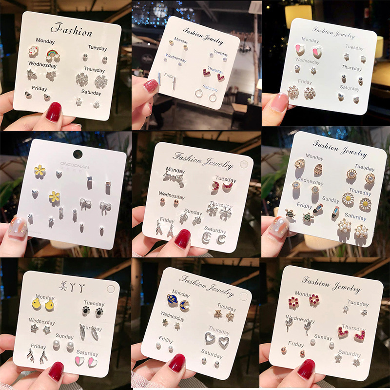 Korean-style Hot Selling Week Earrings Set 7 Pair Simple All-match Sweet Earrings Set Combination Week Earrings for Women