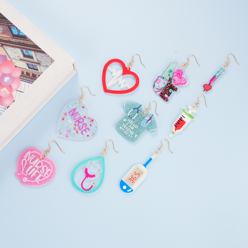 New Nurses Day Earrings Pink Blue Earrings Nurse Uniform Electrocardiogram Stethoscope Nurse Syringe Earrings