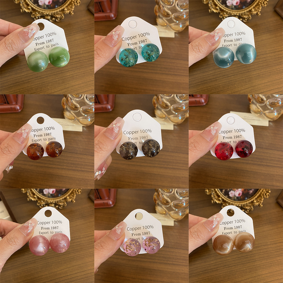 Korean version of dopamine color ball earrings women's 2025 new fashion resin earrings sweet cute round bead earrings