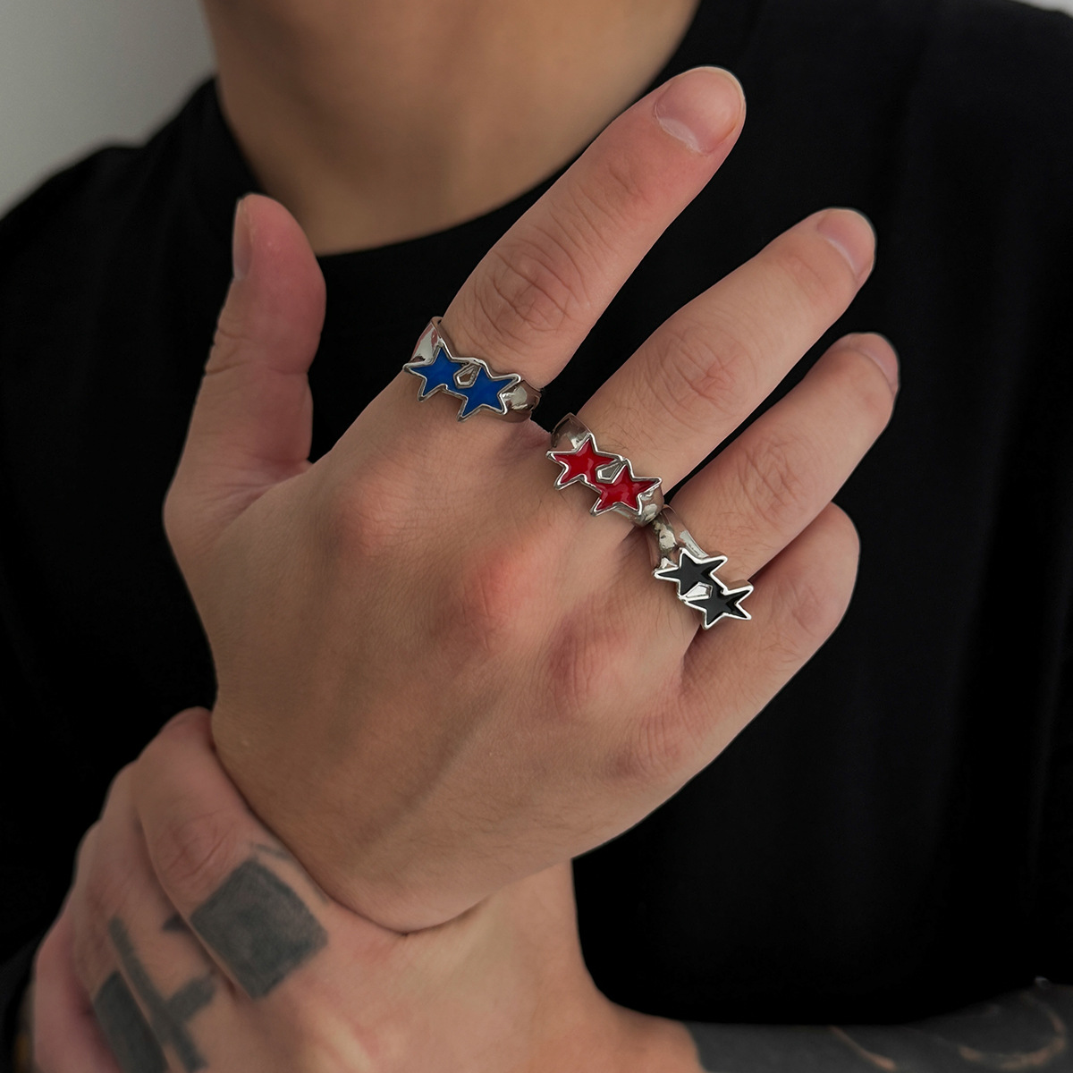 European and American Fashion Personality Oil-Drip Pentagram Ring for Men Hip-Hop Niche Exaggerated Index Finger Ring Cross-Border Men's Jewelry