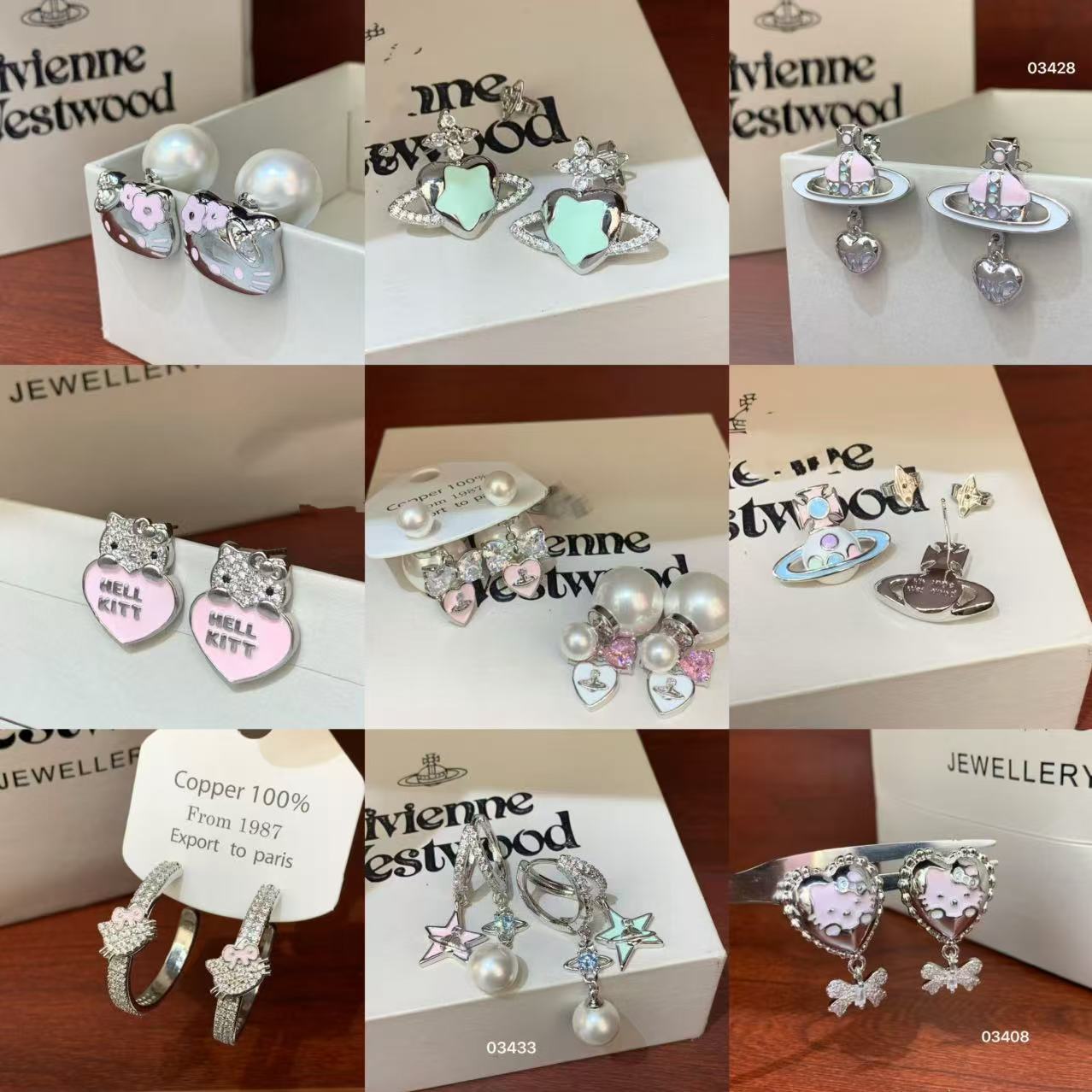 Korean Zircon Saturn Pearl Earrings Niche Design Dripping Oil Stereo Letters Heart Bow Kitten Earrings