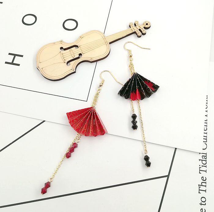 Qingdao Earrings Japanese Style Origami Forest Series Long Tassel Paper Fan Earrings (Single Piece) Handmade