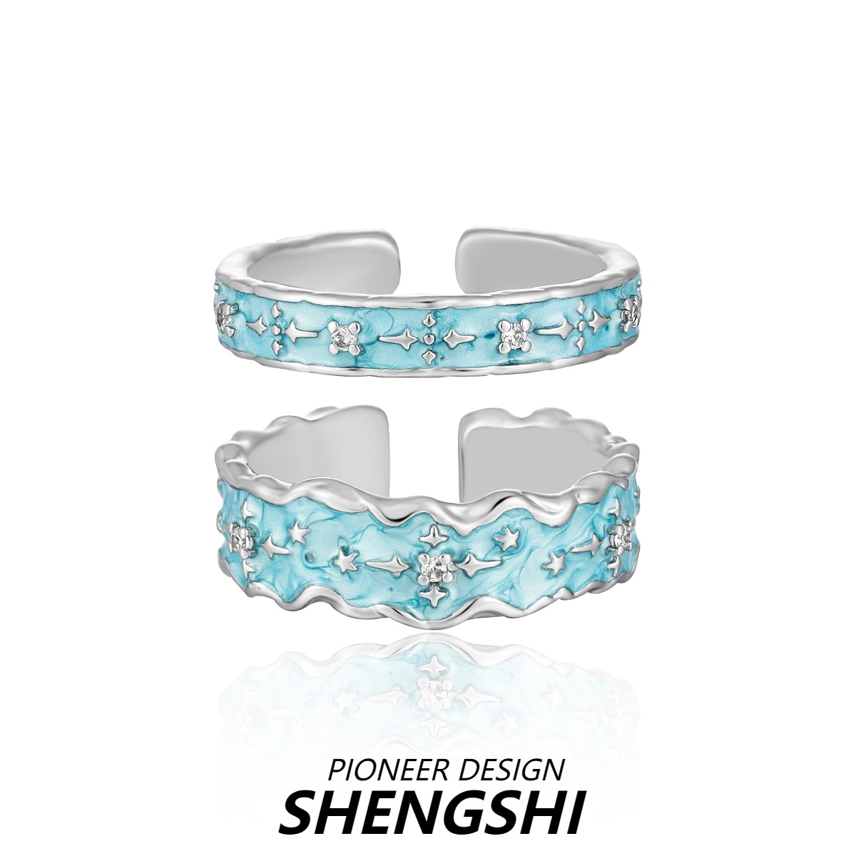 Ring Women's Niche Blue Gel Drop Star Adjustable Advanced Sense Dark Cold Wind Couple Ring Jewelry Wholesale