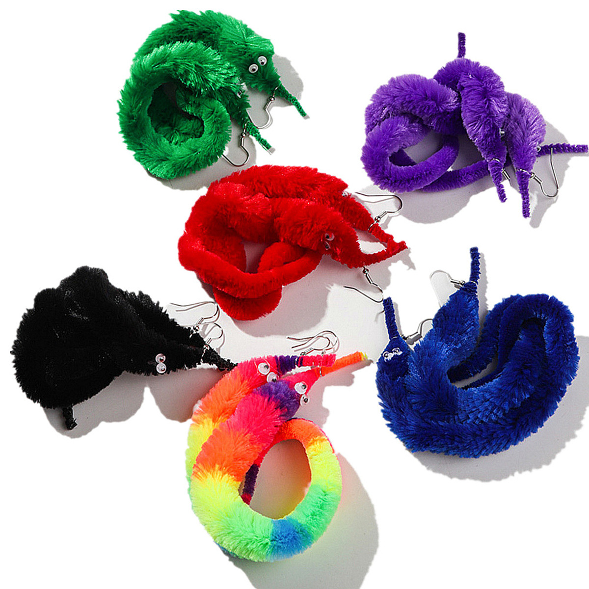 Europe and the United States cross-border long plush seahorse caterpillar exaggerated funny earrings fashion sweet cool sweet wind plush earrings