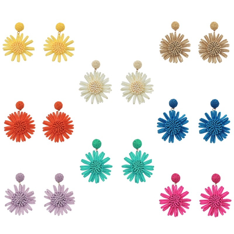 Fashion Raffy Grass Women's Accessories Woven Flower Handmade Earrings High-end Personality Earrings Exaggerated Niche Jewelry