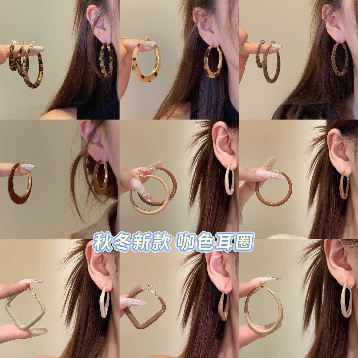 Silver Needle Flocking Geometric Round Leopard Print Earrings European and American Autumn and Winter Style Earrings Niche High-End Fashion Earrings