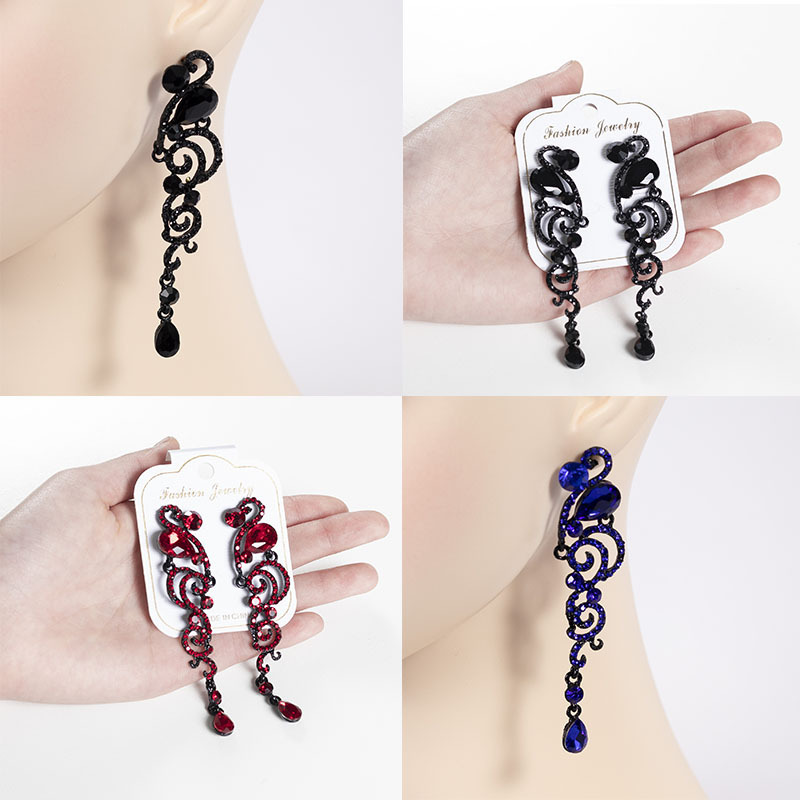 Cross-border selling earrings women's high-end fashion temperament love diamond water drop long tassel earrings wholesale