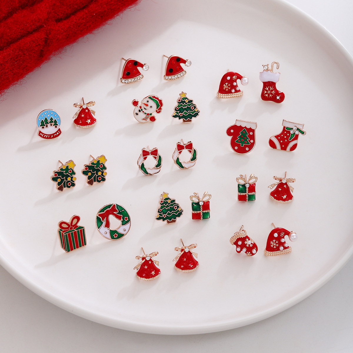 Christmas Christmas Tree Bell Gable Asymmetric Earrings Light Luxury High-end Sense Instagram Style Fashionable Elegant Earrings for Women