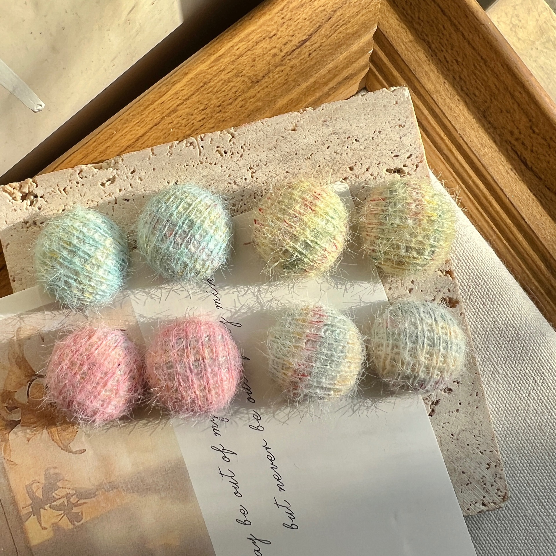 Gentle Cream Plush Cloth Buckle Mosquito Incense Plate Ear Clip Warm Autumn and Winter Macaron Earrings Sweet Earrings