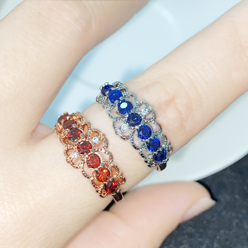 Versa New High-grade Color Treasure Women's Plating 18K Retro Design Sense Row Ring Imitation Sri Lanka Blue Treasure Ring