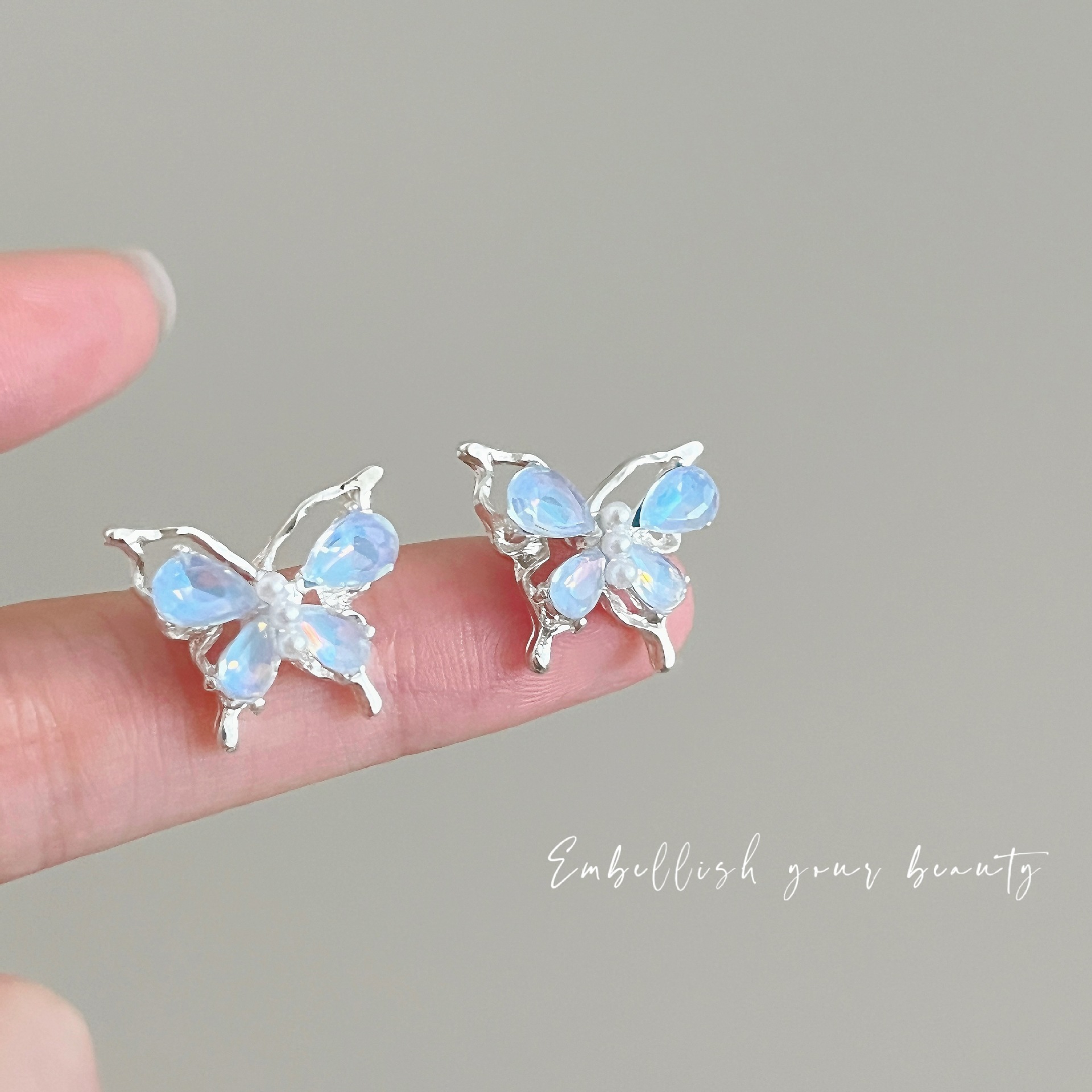Blue Zircon Butterfly Earrings for Women, Summer Fresh and Sweet Fashion Earrings Ins Versatile Elegant High-End Earrings