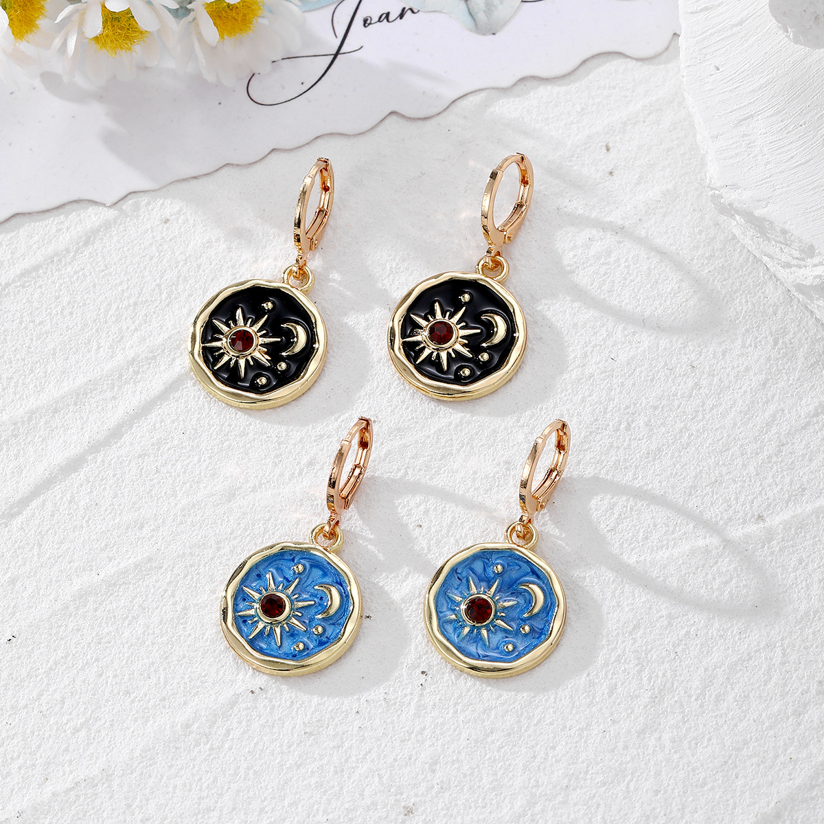 Alloy Oil Drop Fashion Moon Sun Star Earrings Earrings High-End Fashionable New Retro Round Earrings