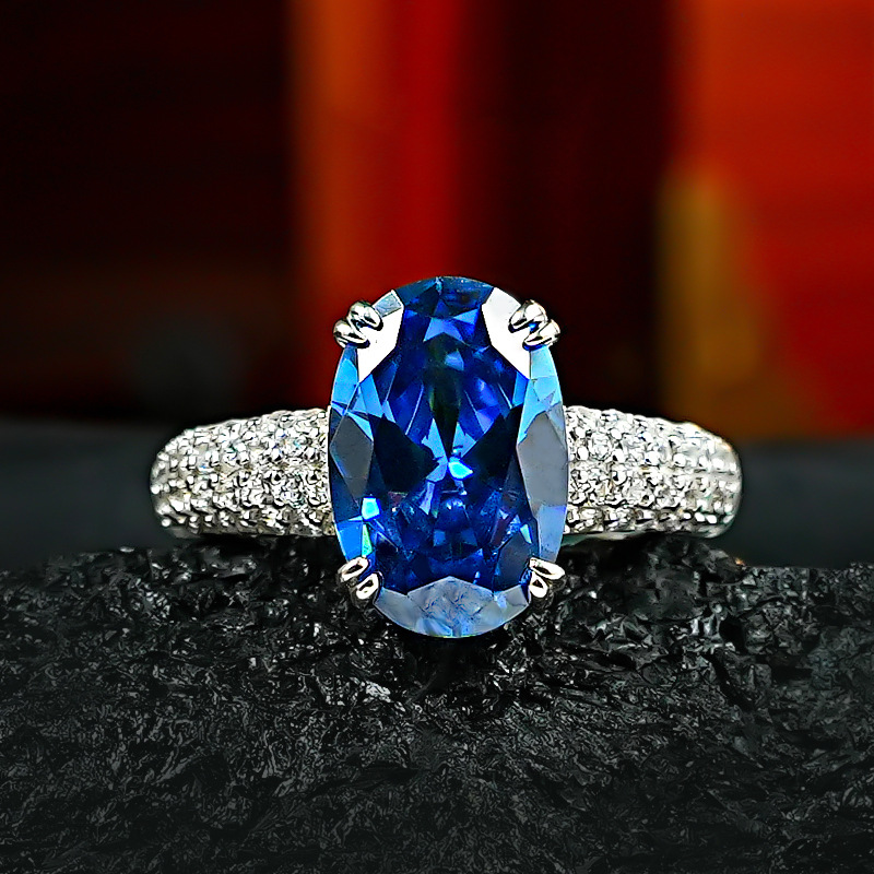 European and American High-End Colored Gemstone Double-Row Diamond Blue Spinel Gemstone Ring Women's Oval Zircon Ring Women's Ring Wholesale