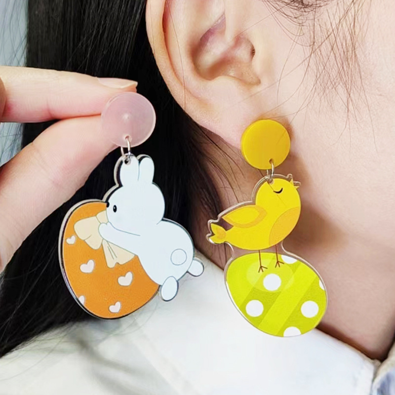 Cross-border new Easter egg acrylic earrings earrings female personality simple color rabbit earrings earrings