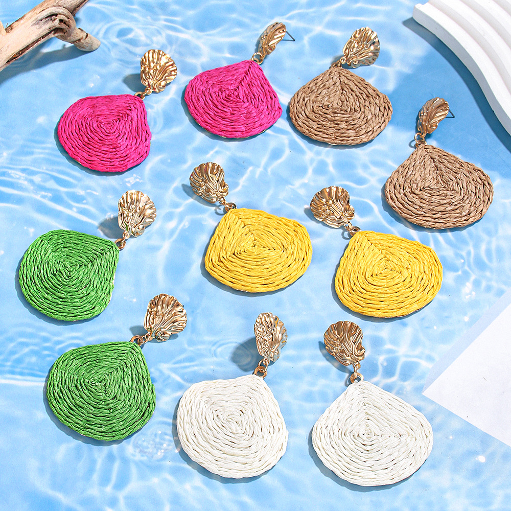 European and American Summer New Hand-Woven Raffia Earrings Fashion Bohemian Shell Beach Vacation Style Earrings