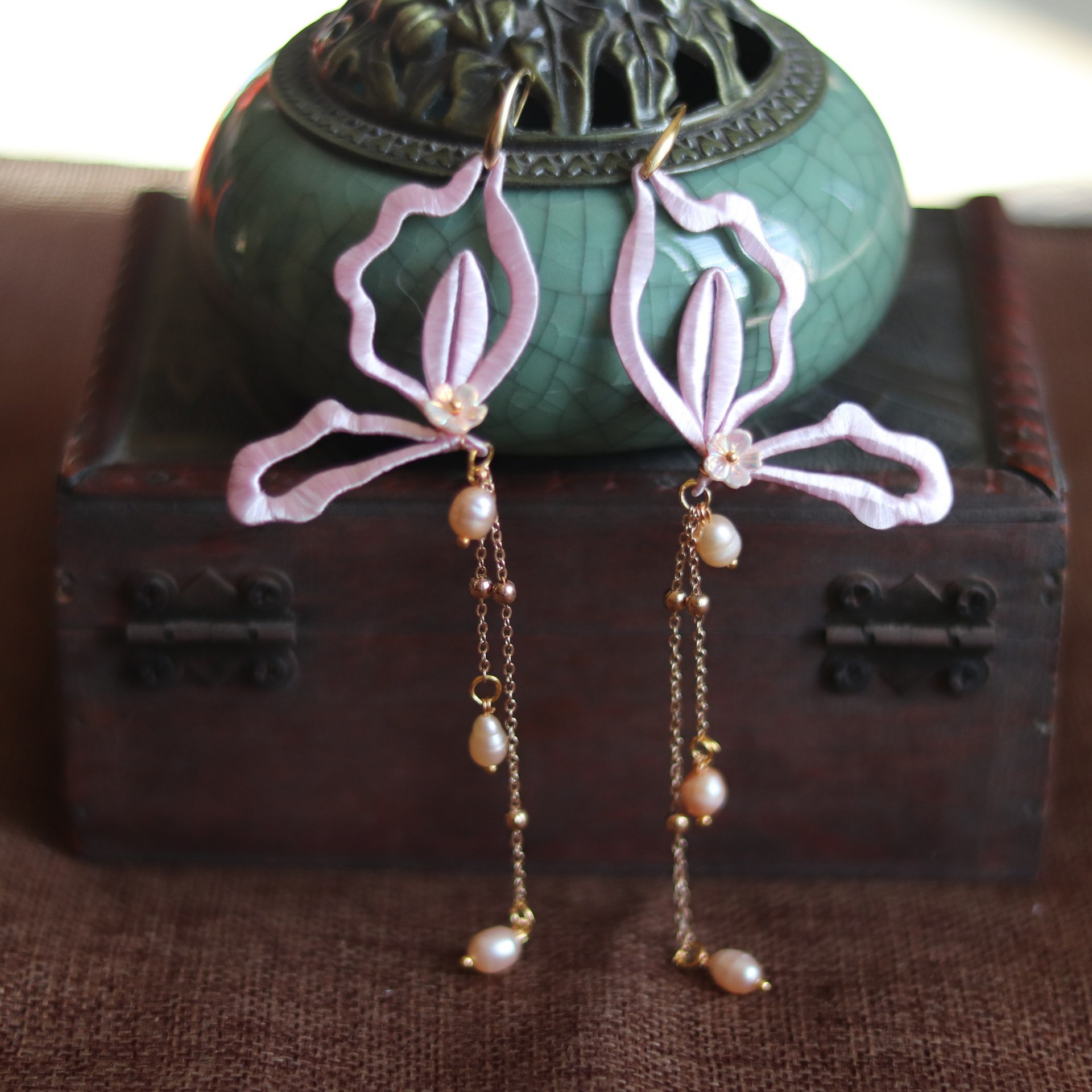 Flower-wrapped Pearl Earrings Retro All-match Classical Antique Hanfu Tassel Earrings Accessories Simple Butterfly Ear Clip Ear Hook