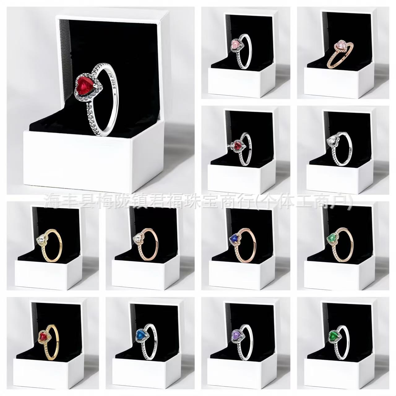 Cross-Border Exclusive for Panjiora White Copper Shining Red Heart Ring Love Pink Diamond Rose Gold Multi-Color Pair Ring for Women