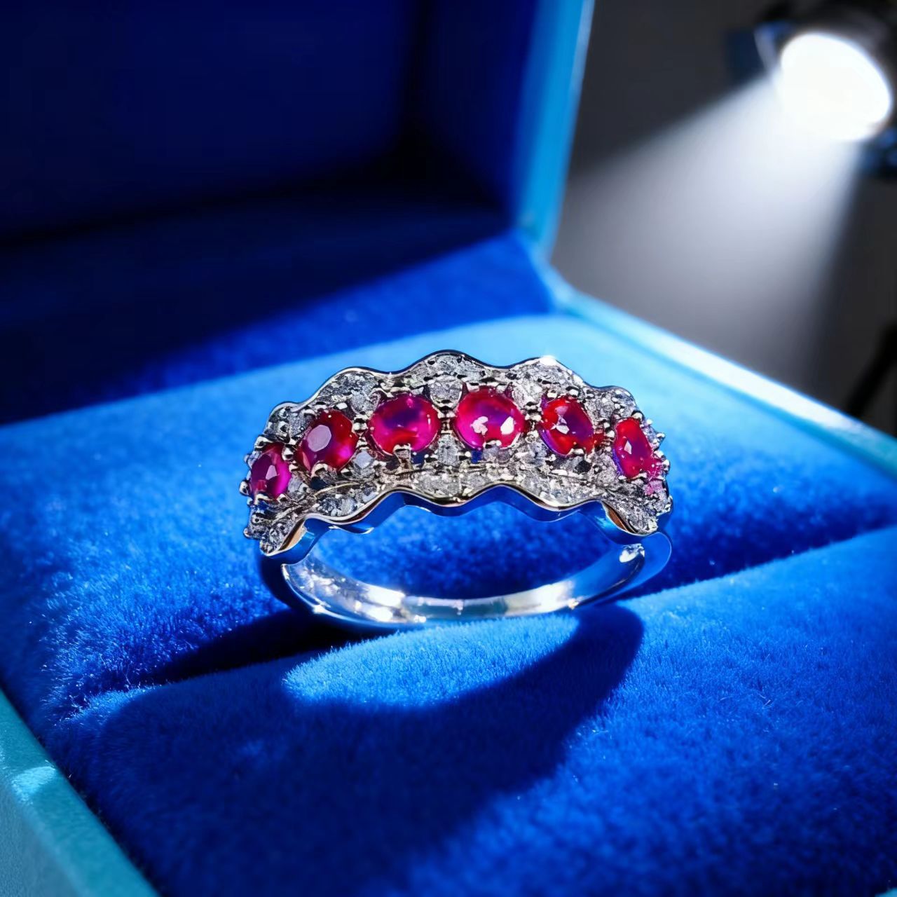Simulated Gypsophila Shining Half Circle Inlaid Pigeon Red Red Ruby Row Ring Women's Color Treasure Ring Jewelry Live Supply