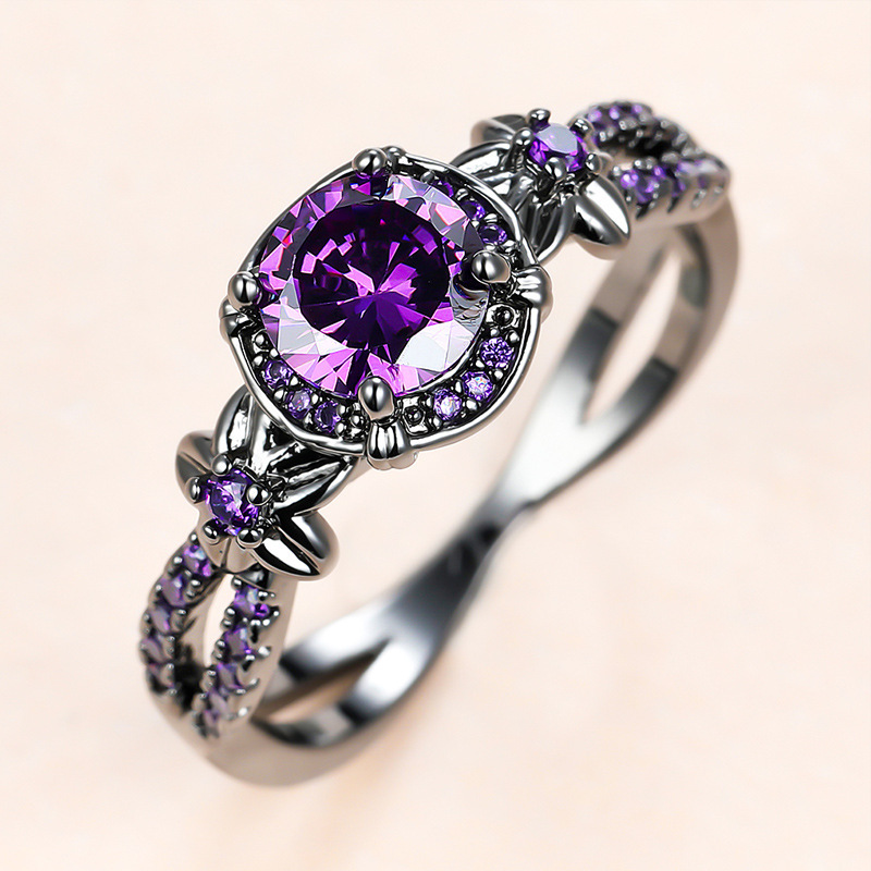 Cross-Border Dark Black Gold Diamond Group Set Full Diamond Ring Set Opal Ring European and American Wholesale