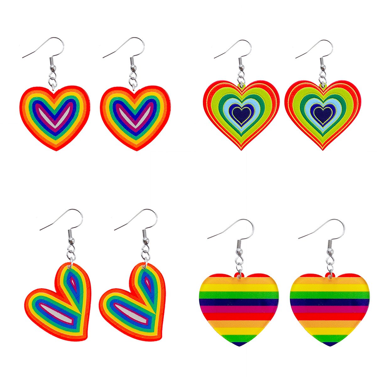 Cross-border rainbow element color seven color earrings women's earrings love heart-shaped temperament ear clip without ear holes for women