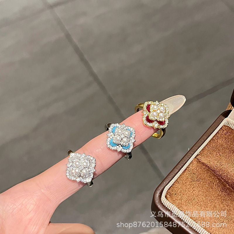 Vintage Exquisite Light Luxury High-End Enamel Ring Index Finger Clover Versatile Stylish Niche Ring from Xiaohongshu