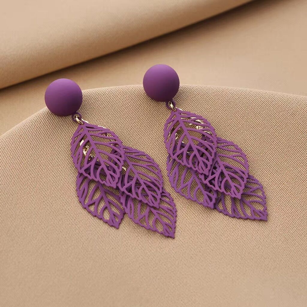Internet celebrity elegant retro Hong Kong style green earrings autumn and winter new trendy leaves fashion large earrings earrings